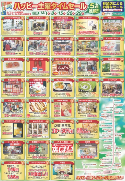 12月の毎週土曜日に参加店によるタイムセールを開催します。