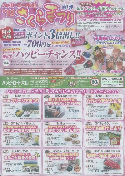 備考:4月1日開催日については、青年部のブースのみ1000円以上お買物いただいた方へ「さくら祭りセール」福引券を差し上げます。(予定)