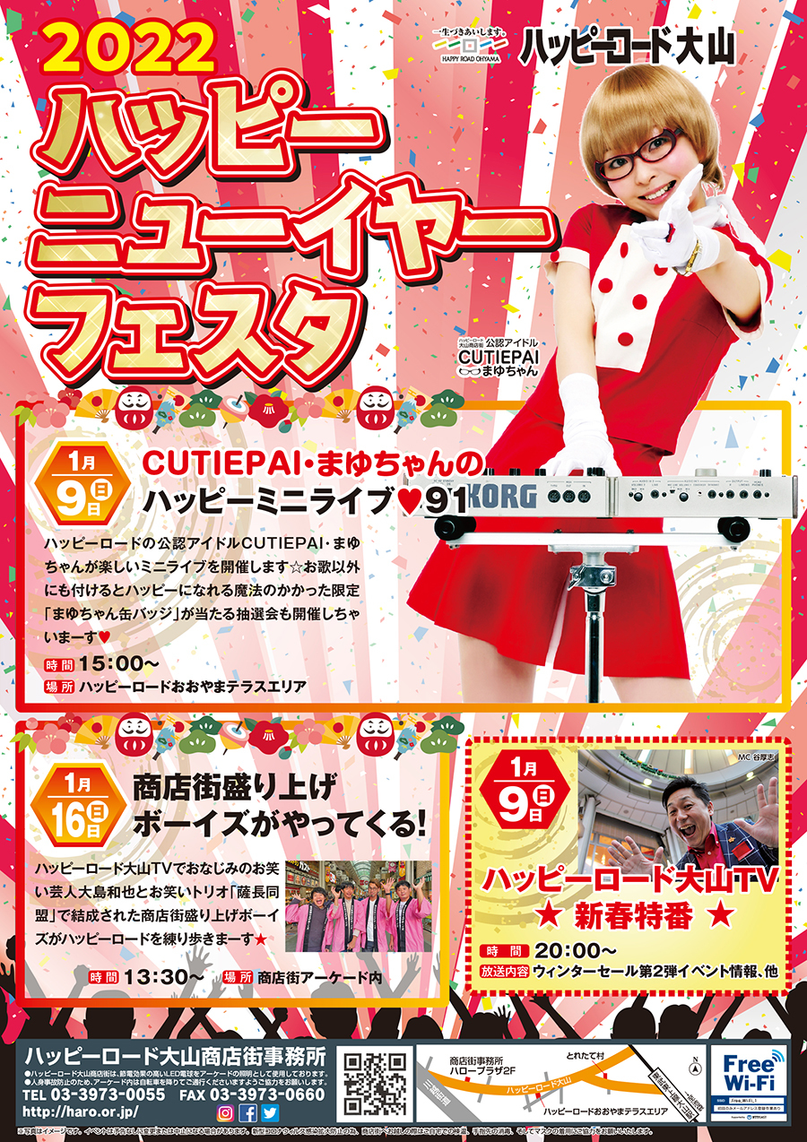 ハッピーロードの公認アイドルCUTIEPAI・まゆちゃんが楽しいミニライブを開催します☆お歌以外にも付けるとハッピーになれる魔法のかかった限定「まゆちゃん缶バッジ」が当たる抽選会も開催しちゃいま~す♡