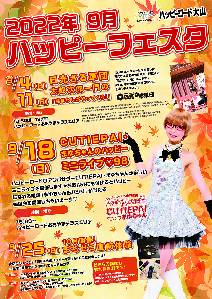 時間・場所 15:00~・ハッピーロードおおやまテラスエリア