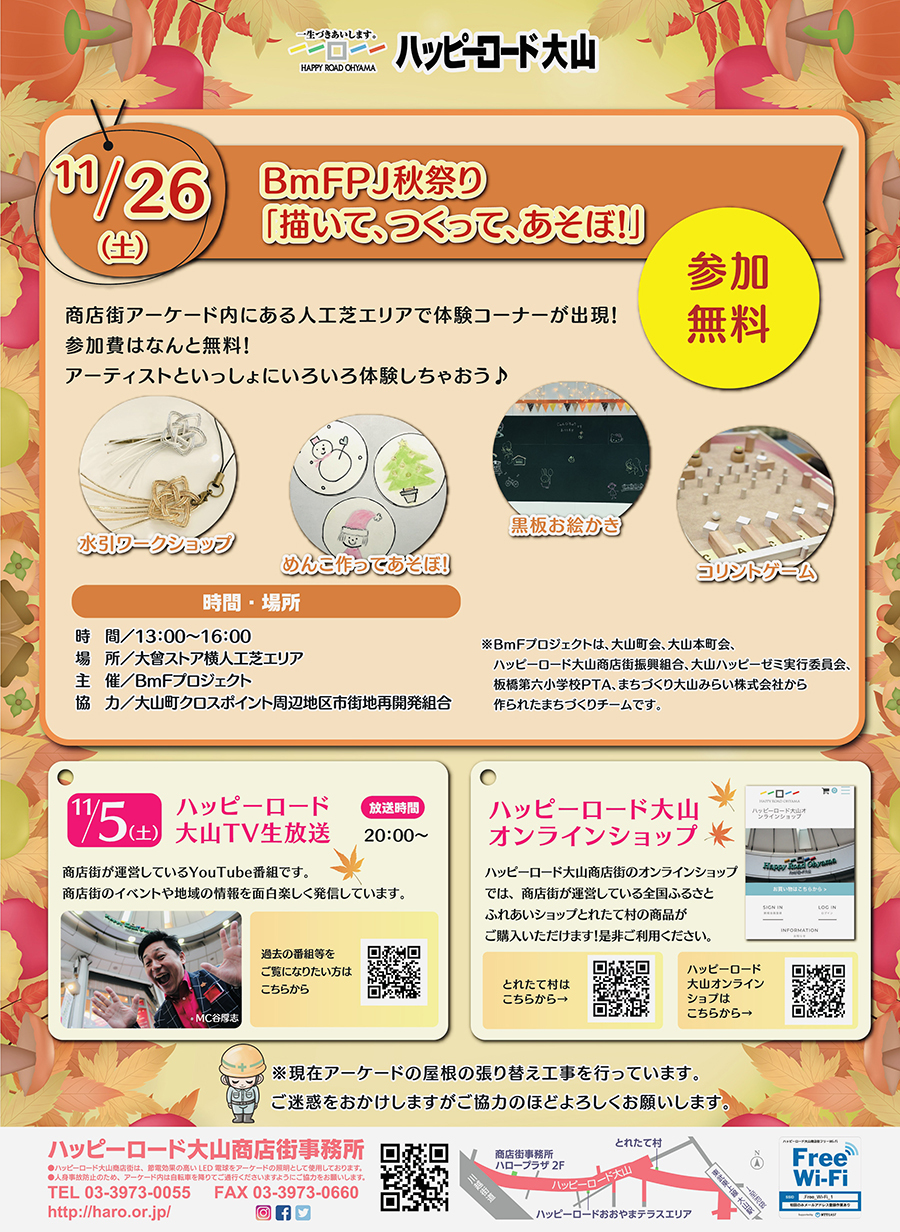 ※BmFプロジェクトは、大山町会、大山本町会、ハッピーロード大山商店街振興組合、大山ハッピーゼミ実行委員会、板橋第六小学校PTA、まちづくり大山みらい株式会社から作られたまちづくりチームです。
