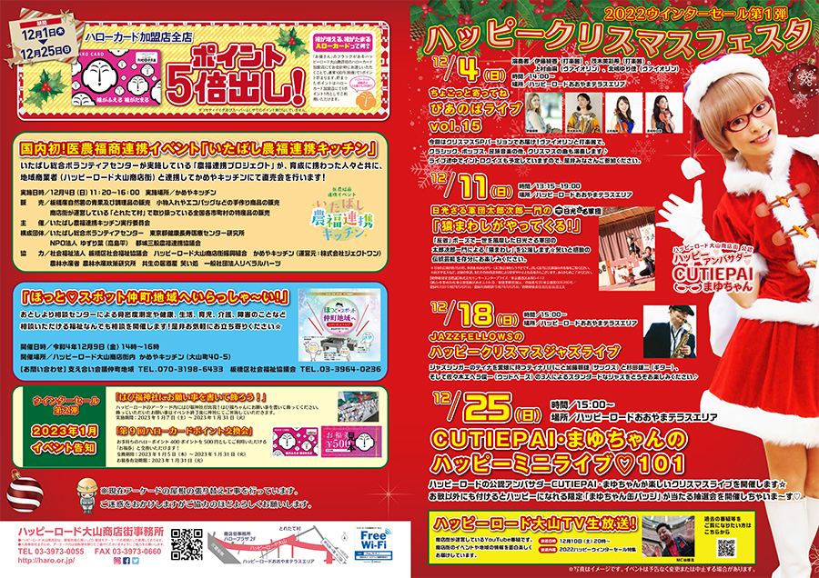 ハッピーロードの公認ハッピーアンバサダーCUTIEPAI・まゆちゃんが楽しいクリスマスライブを開催します☆お歌以外にも付けるとハッピーになれる限定「まゆちゃん缶バッジ」が当たる抽選会を開催しちゃいまーす♡