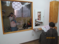子供連れの母親層が安心して長時間のヘアケアを受けるための様々な工夫がなされている。保育士さんが常駐している託児所付きの美容室で、赤ちゃんや幼児のいるお母さんが安心してヘアケアを受ける間、ガラス戸越に保育士さんが幼児のケアに対応。