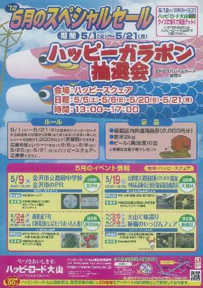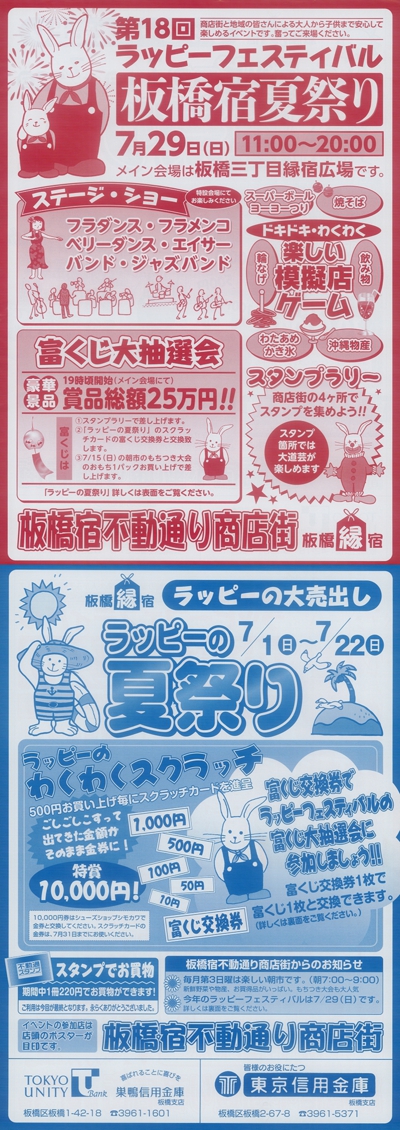 期間中300円お買毎に福引補助券を差上げ10枚にて抽選が1回出来ます。景品は新橋演舞場の観劇券・ディズニーランドの入場券等をはじめ、すばらしい景品が空クジなしで当たります。