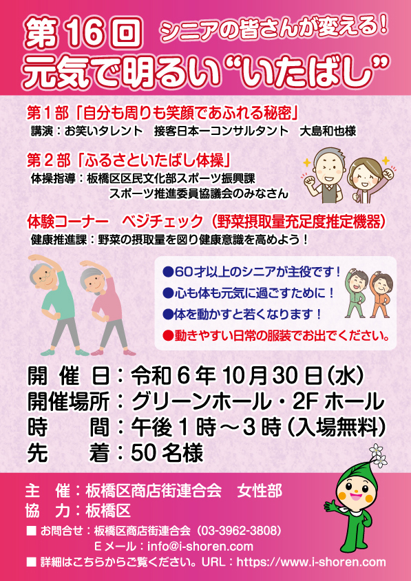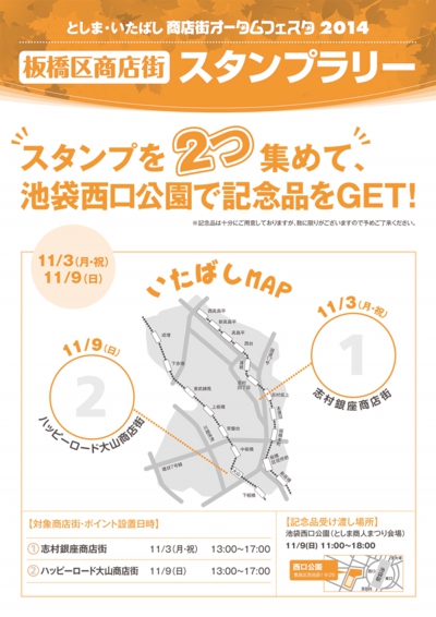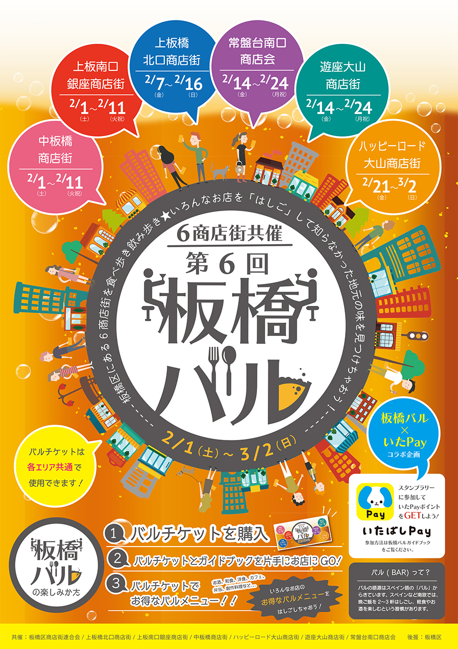 今回は、遊座山商店街(振)、ハッピーロード大山商店街(振)、中板橋商店街(振)、上板南口銀座商店街(振)、 上板橋北口商店街(振)、常盤台南口商店会の6商店街が参加して開催されます。
