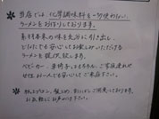 こだわり:清潔感のある店舗。化学調味料を使用せずヘルシーなラーメンで女性や高齢者にも好評